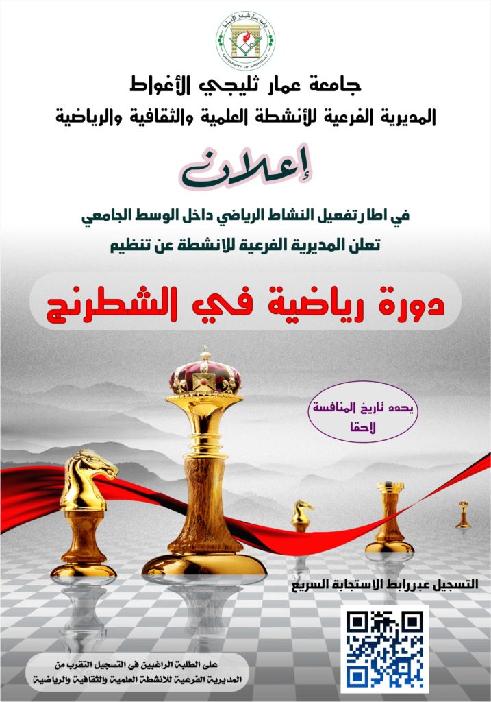 تُعلن المديرية الفرعية للأنشطة عن تنظيم 🏆 دورة رياضية في الشطرنج ♟️