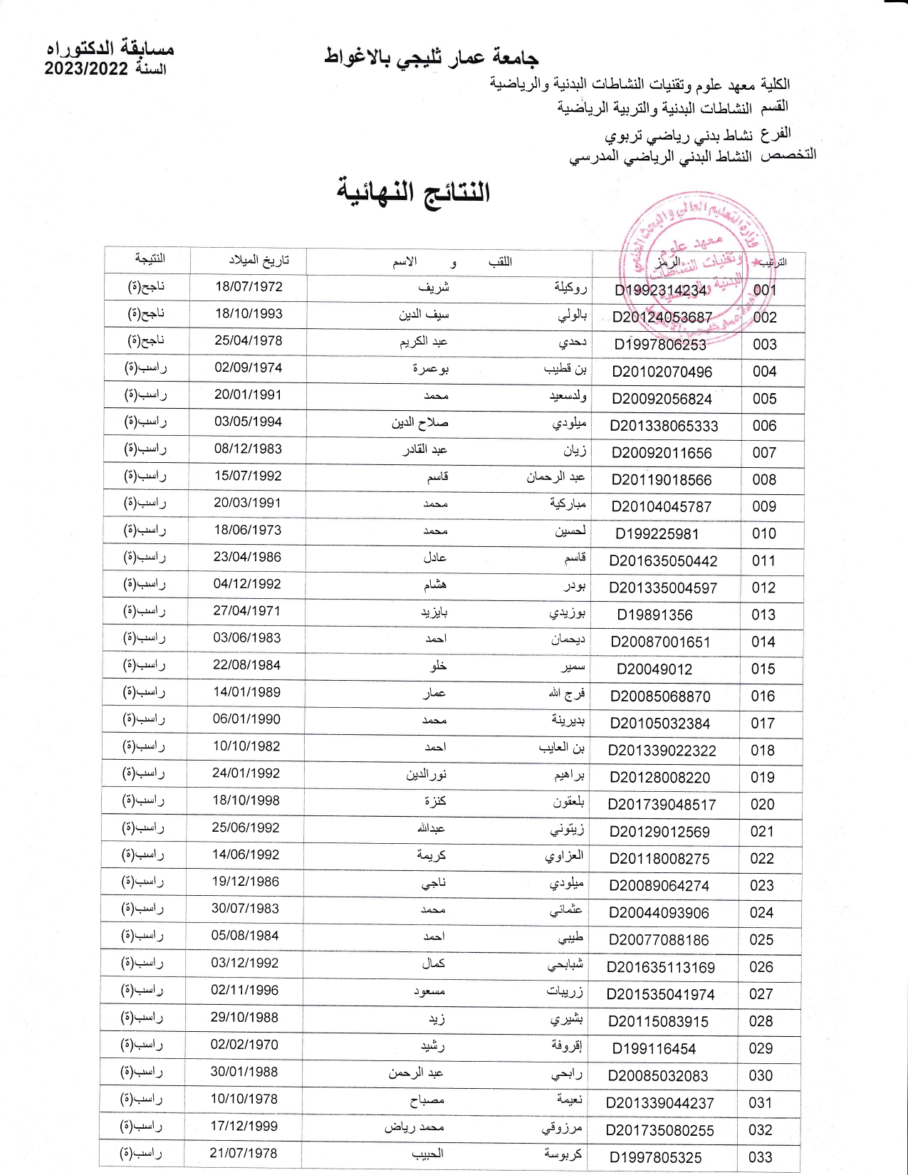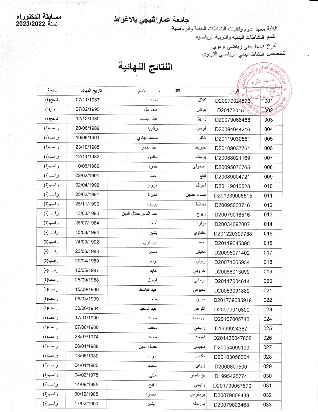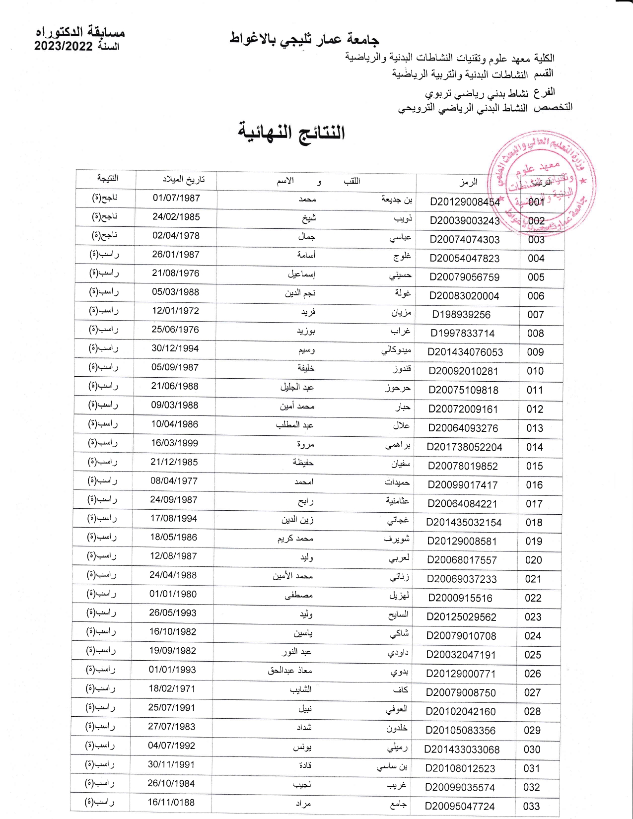 التخصص: النشاط البدني الرياضي التربوي