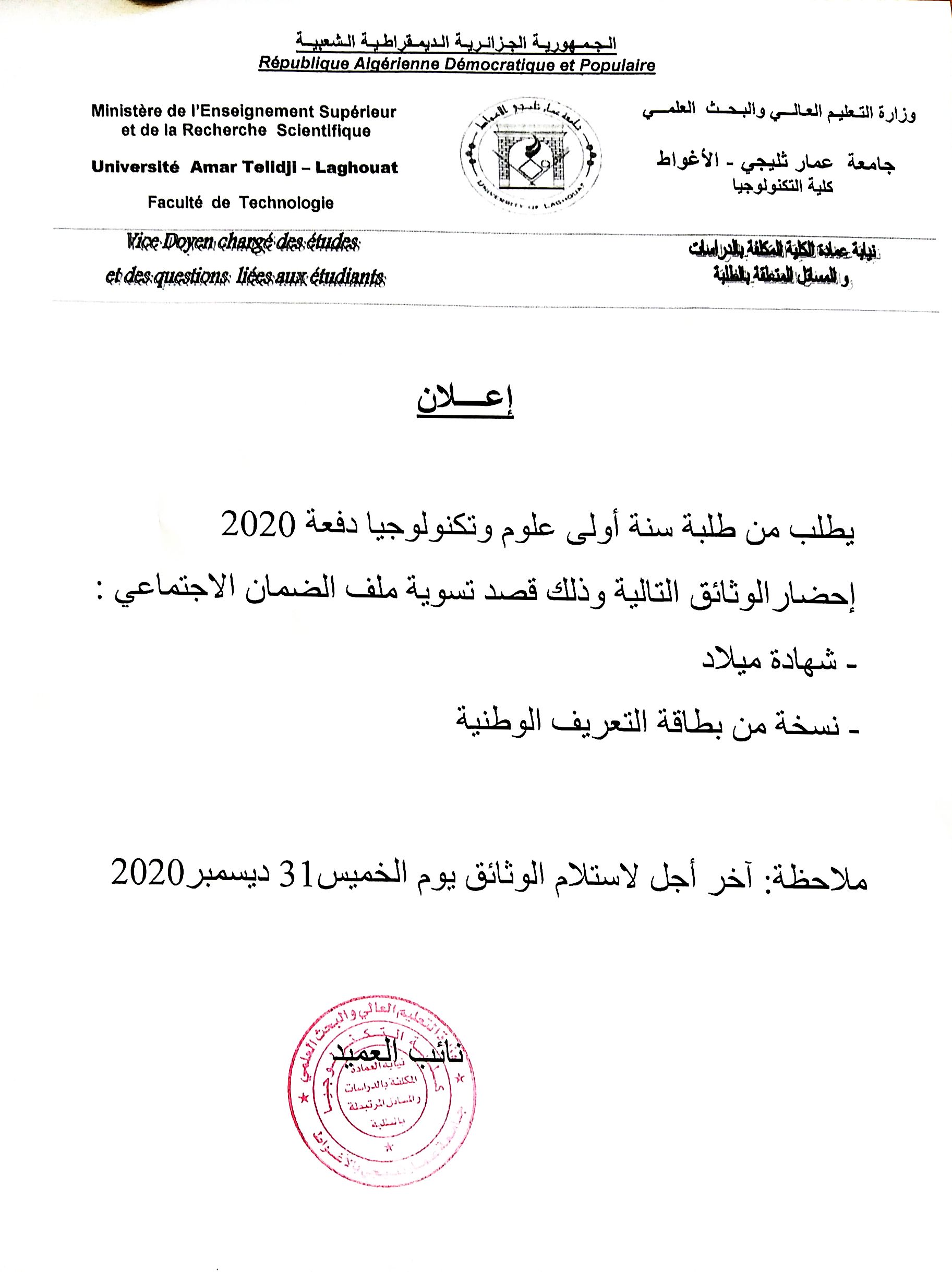 Vice Rectorat Chargé de la Formation Supérieure du Premier et Deuxième Cycles, de la Formation Continue, des Diplôme et de la Formation Supérieure de Graduation