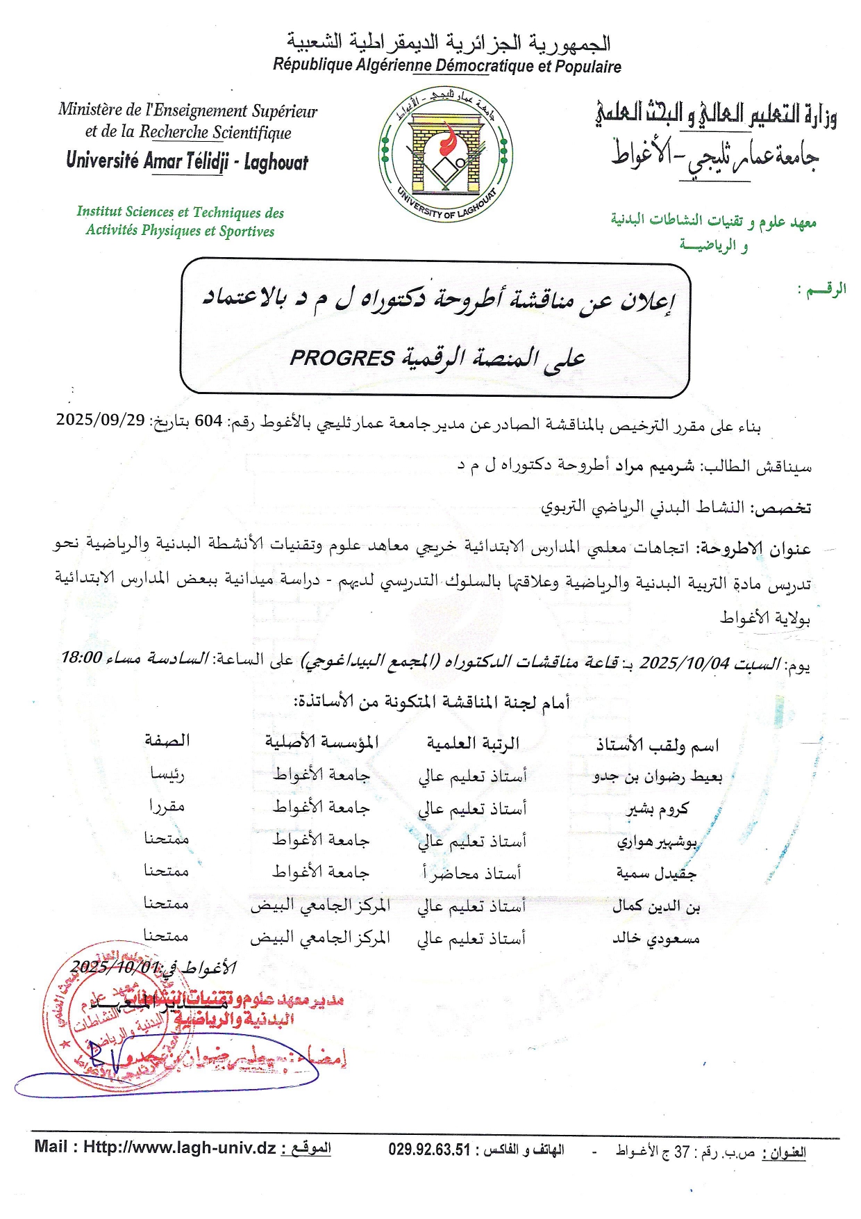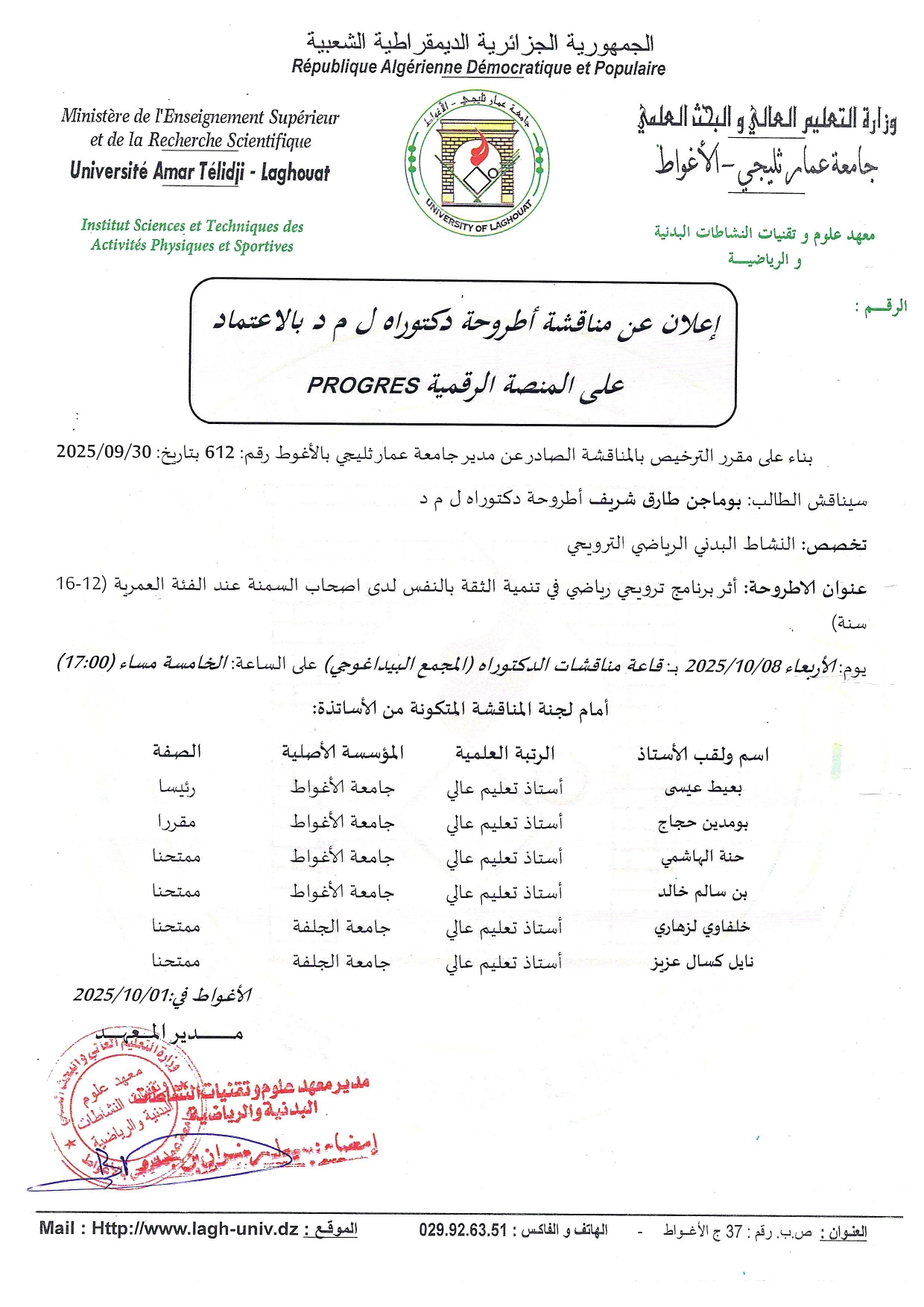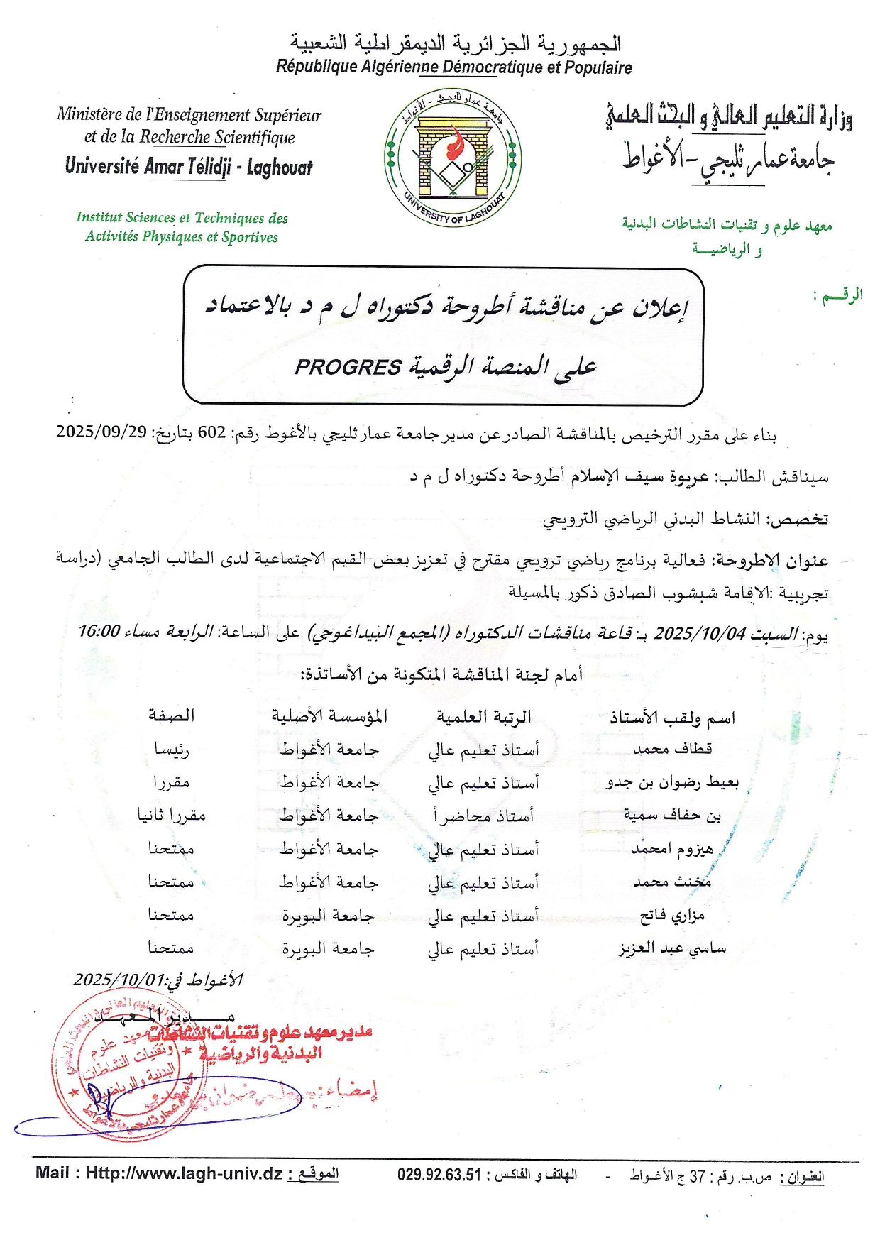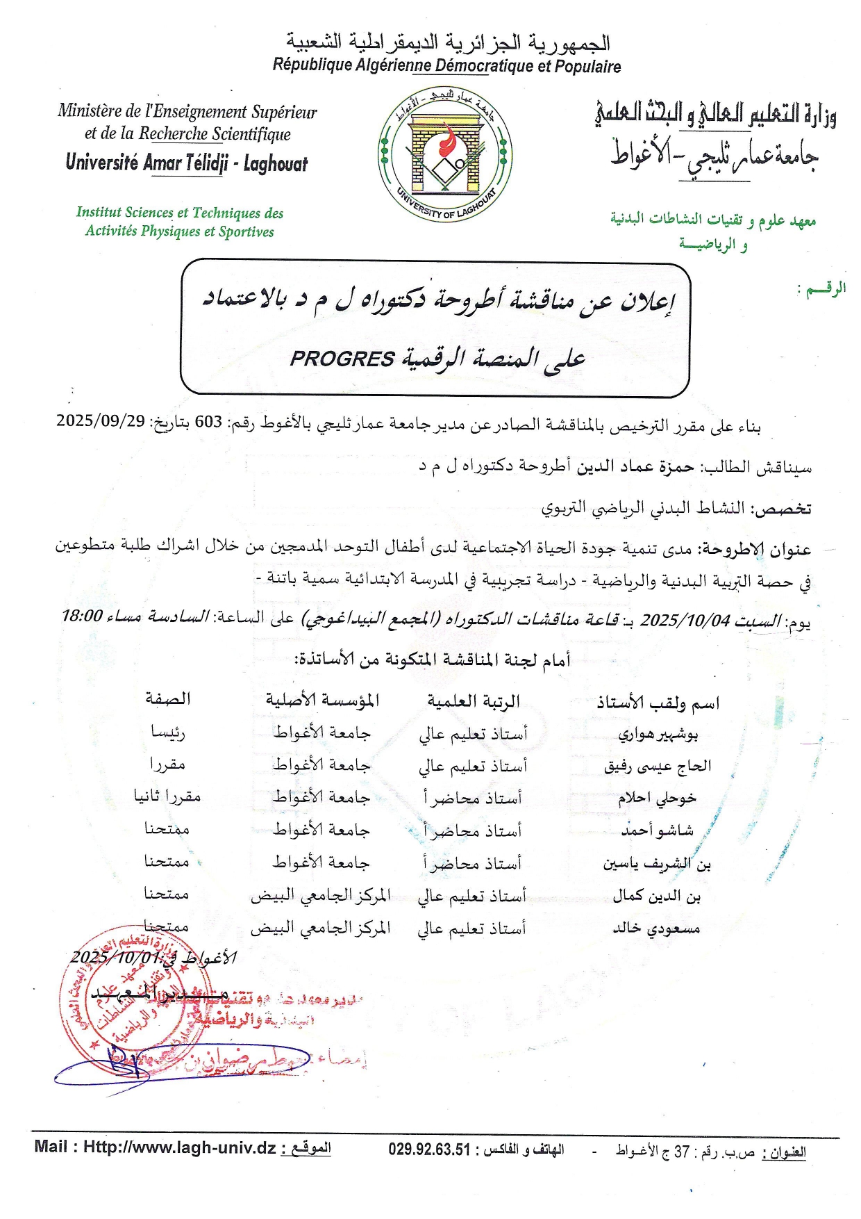 باللغة الأجنبية (الفرنسية): Département des activités physiques et de l’éducation physique